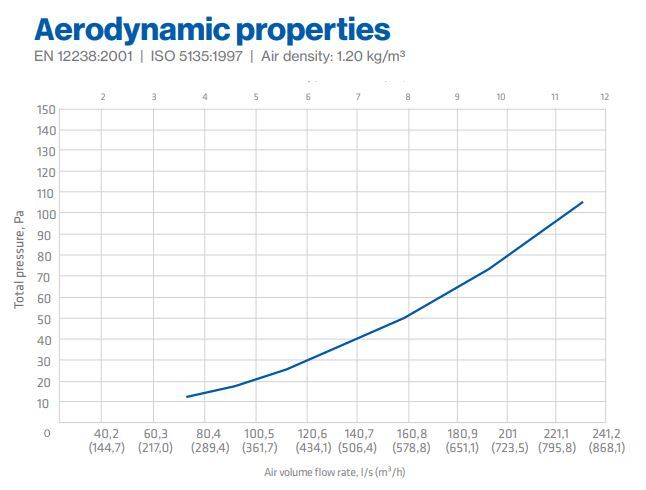 Dimensions: Duct size Ø 160 mm, external Ø 300 mm; installation set 300 x 300 mm, installation area must be at least the same size.