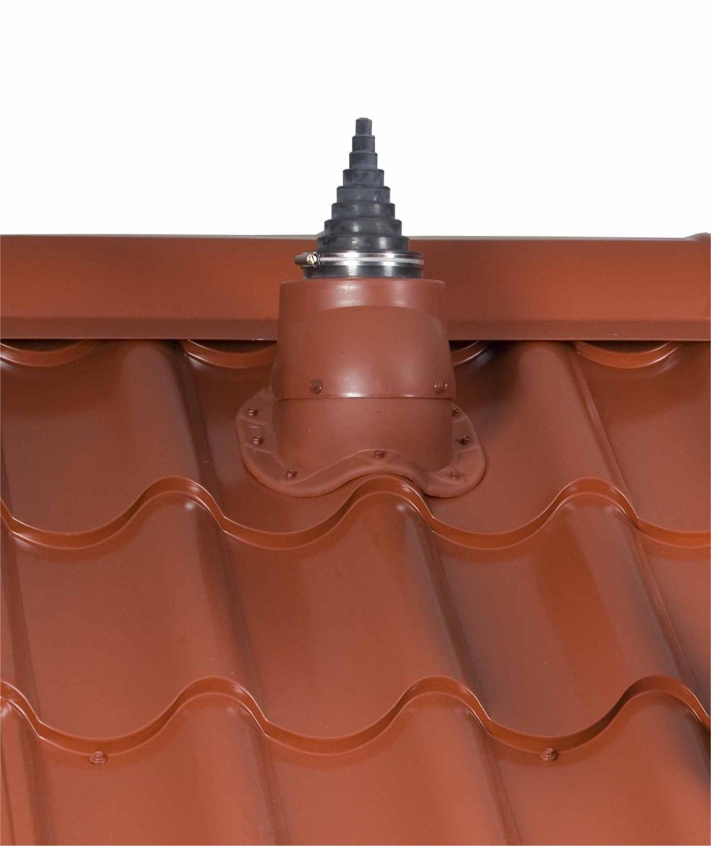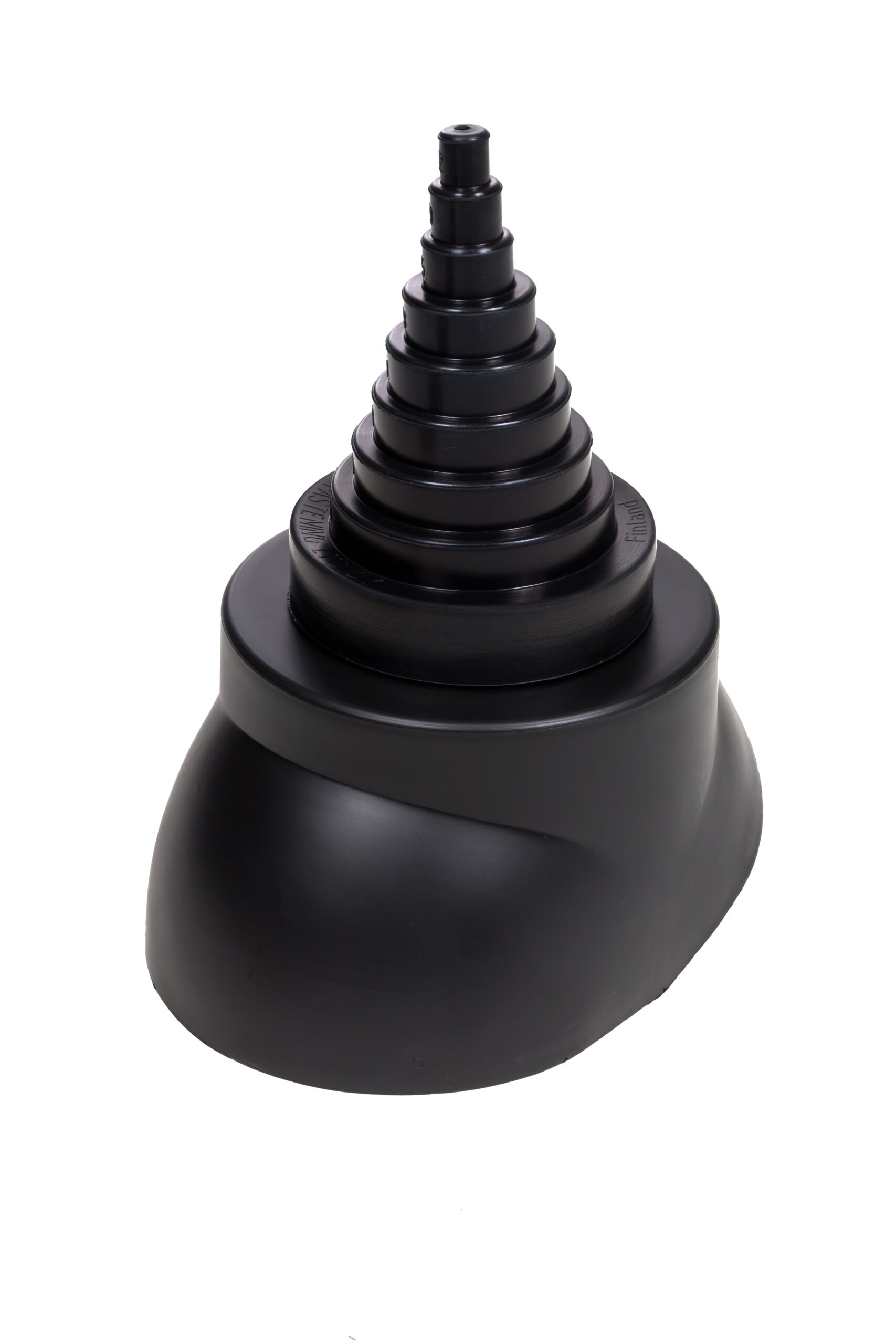 Description: Pass-through seal for a Ø 12/19/25/38/50/60/75/90/100 mm aerial pipe, mast, cable or roof bollard installed on a roof. In addition to the stepped EPDM rubber seal, the set contains a plastic collar and a clamp. The plastic collar should be installed onto a VILPE pass-through set which has been selected according to the roofing material. The flexible rubber cone permits some movement of the aerial pipe, and ensures a watertight seal between the pass-through and the roof. The weather- and ozone-resistant properties of EPDM rubber are the best possible, and it can endure continuous heat stress of +90°C (and intermittently up to +150°C). EPDM rubber also tolerates the acids and alkalis often found in the air in industrial areas.