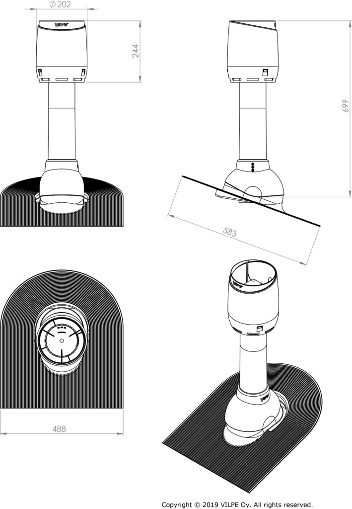 Contents: Felt pass-through, negative pressure air vent pipe, VILPE FLOW cowl.