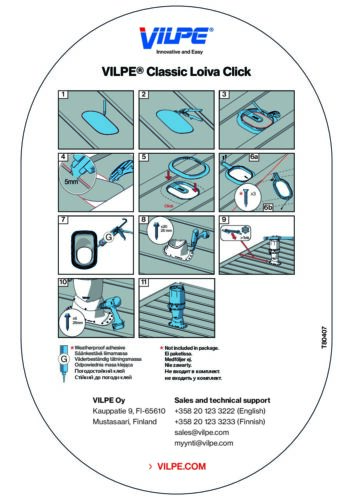 Contents: Pass-through, Click underlay seal, screws, installation instructions/templates for the underlay seal and the pass-through.