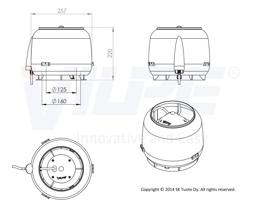 Description: Roof fan for the top of an air conduit or silencer. An installation set for a flat surface is included with this product.