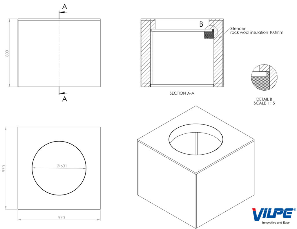 Description: Pass-through has a 100 mm insulation layer with an A1 fire rating. Includes fasteners, screws and a built-in silencer.