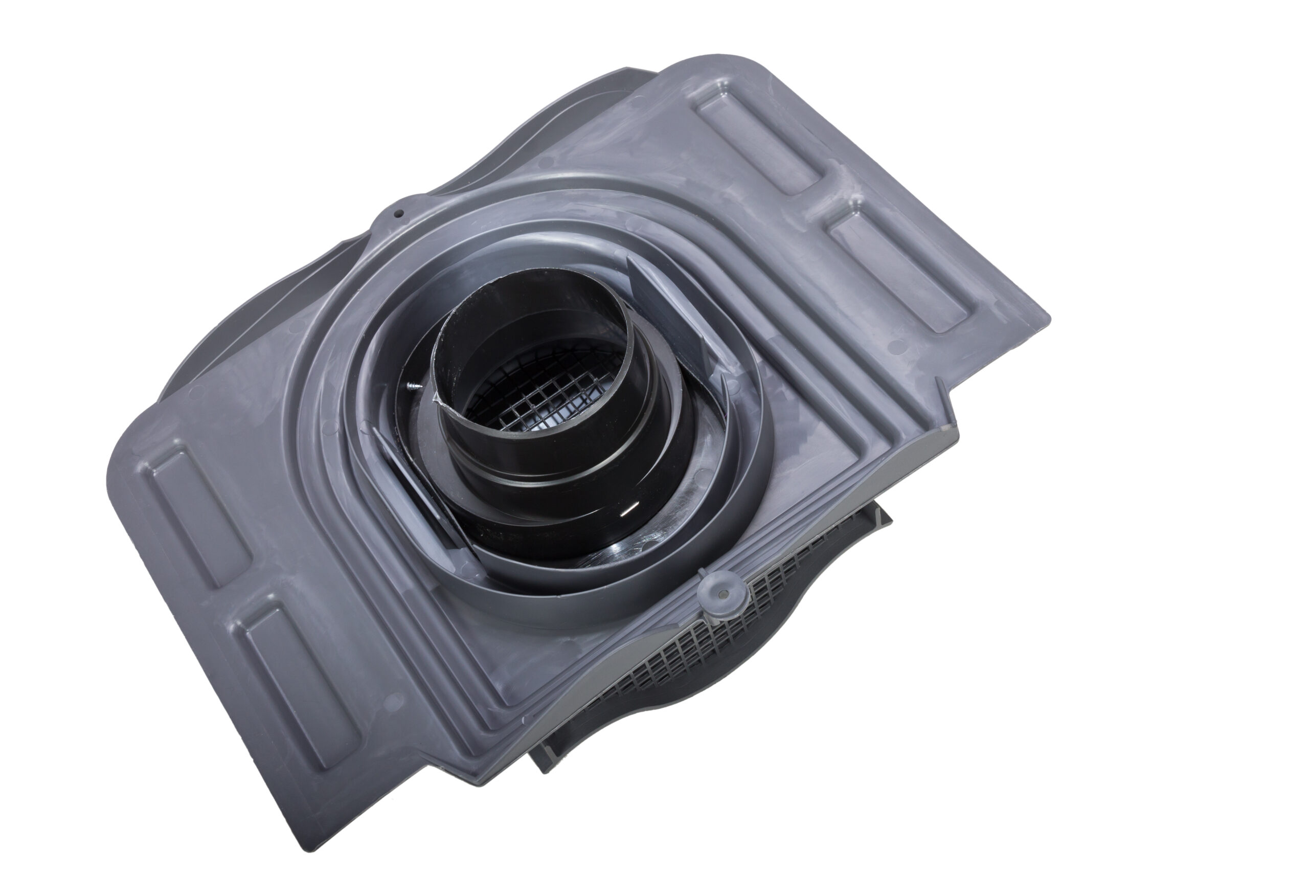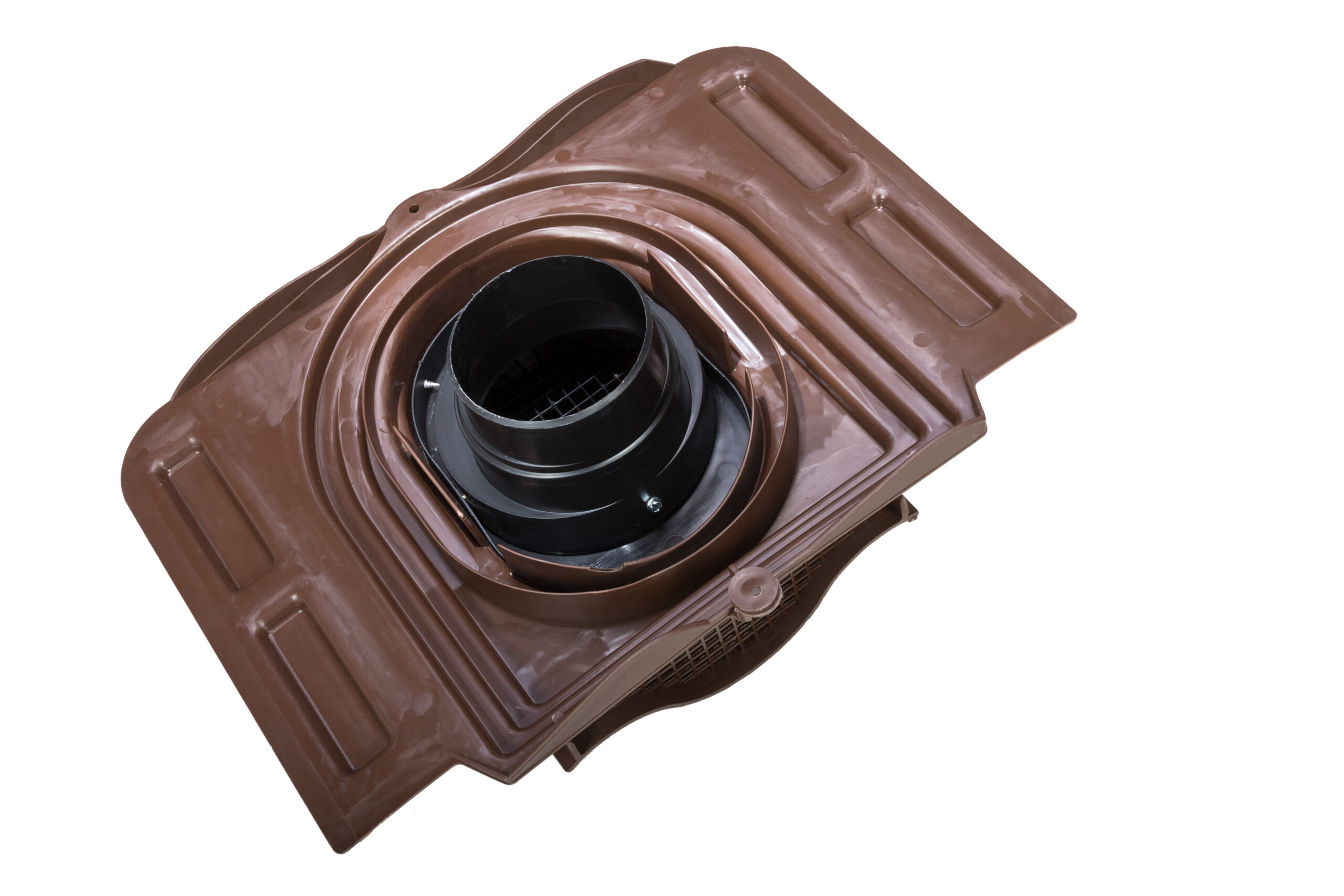 The KTV roof vent can be used for ventilating roof structures and attic spaces as well as for ventilating sewer pipes. The KTV roof vent can be selected from 10 different models according to the roofing material. The selection principles are the same as for pass-through sets. A KTV roof vent contains a valve, pass-through, an underlay ring and fixing screws. It can also include an Ø 110/125 adapter, if needed. The set is also available with a flex pipe if the KTV roof vent is to be used for ventilating a sewer pipe.