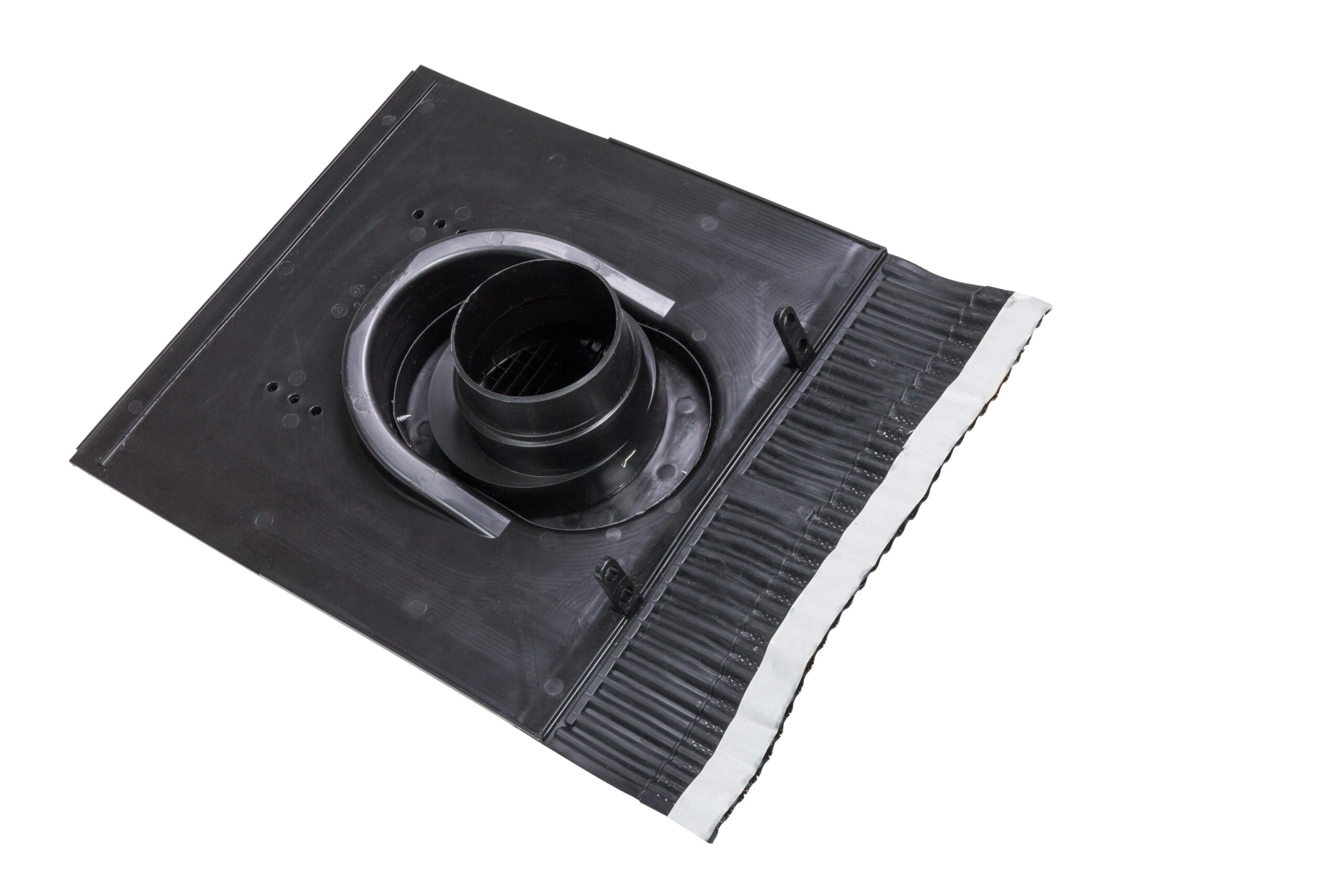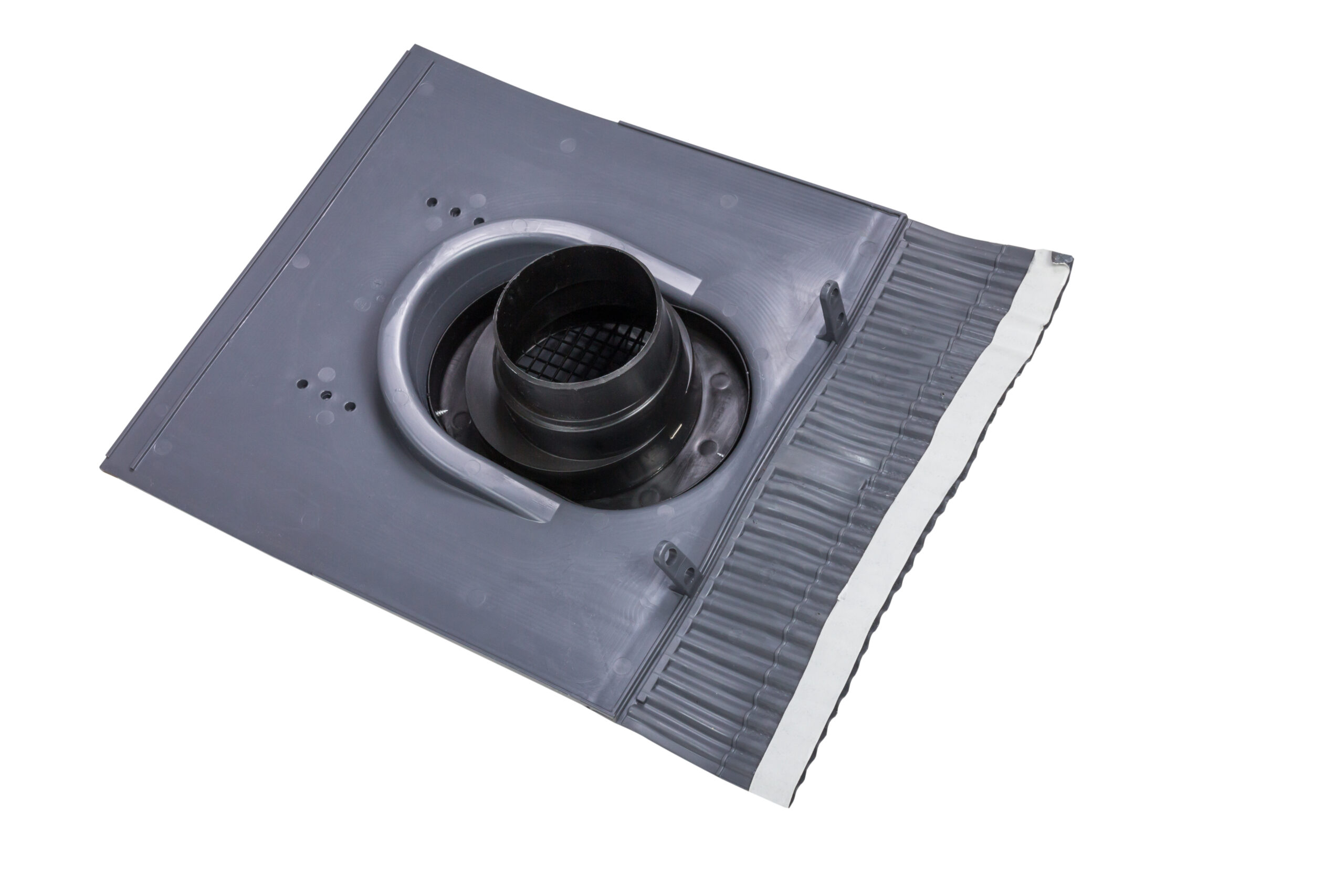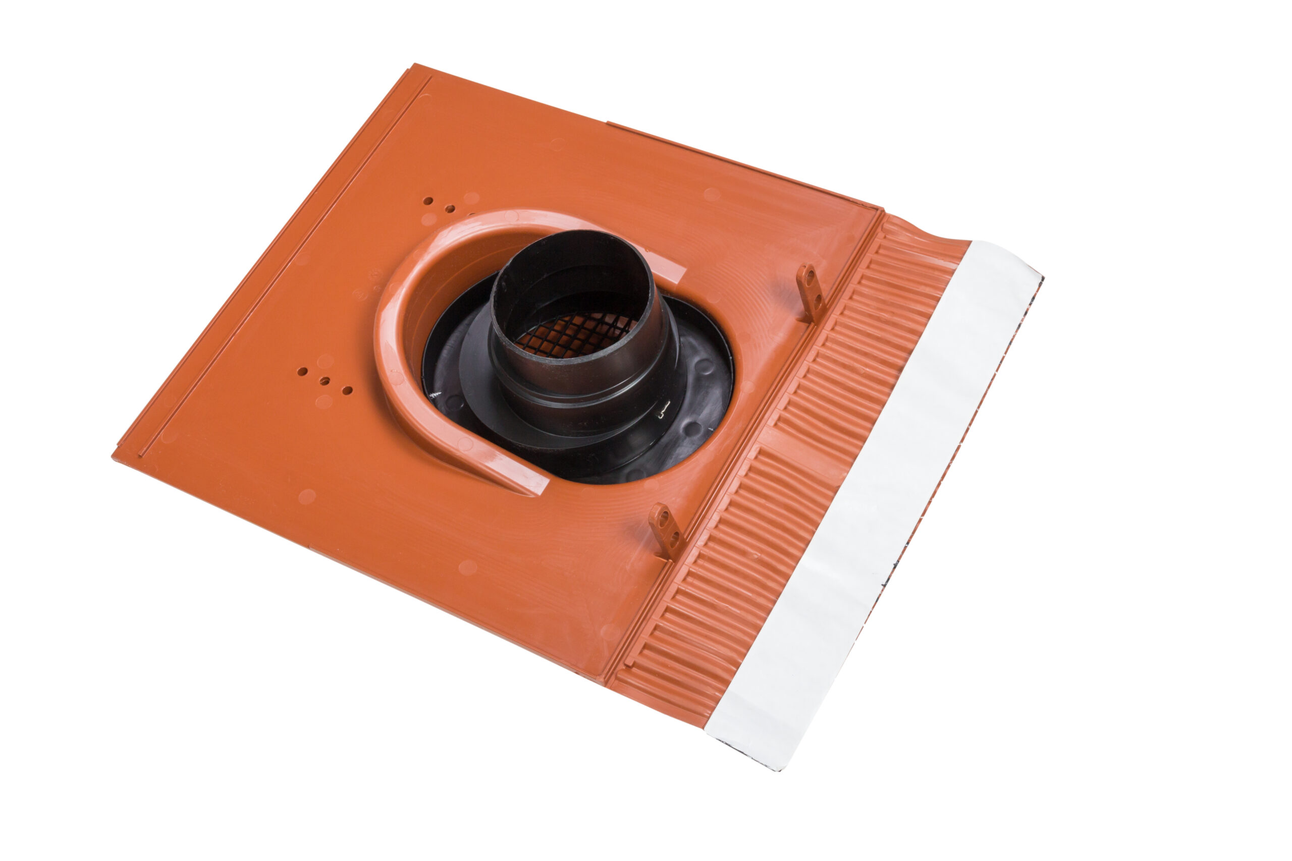 The KTV roof vent can be used for ventilating roof structures and attic spaces as well as for ventilating sewer pipes. The KTV roof vent can be selected from 10 different models according to the roofing material. The selection principles are the same as for pass-through sets. A KTV roof vent contains a valve, pass-through, an underlay ring and fixing screws. It can also include an Ø 110/125 adapter, if needed. The set is also available with a flex pipe if the KTV roof vent is to be used for ventilating a sewer pipe.