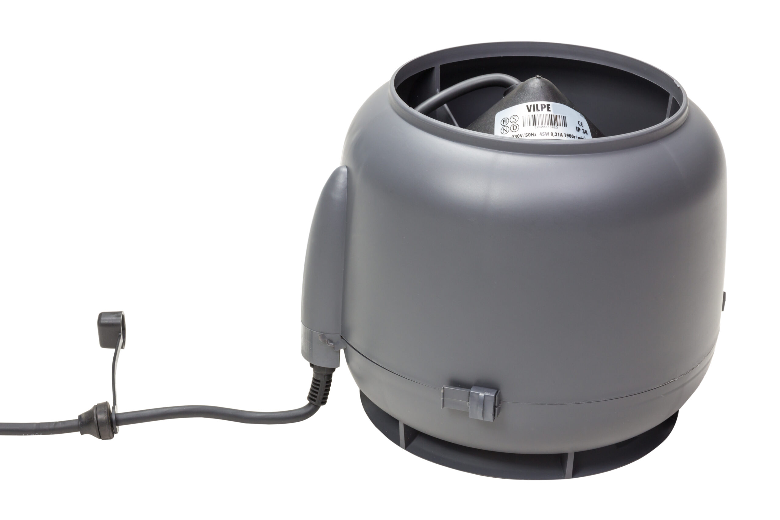 Description: Powered polypropylene roof fan for radon and toilet ventilation, with protective coating. For Ø 160 mm duct. Can also be installed on to existing ventilation pipes with adapters.