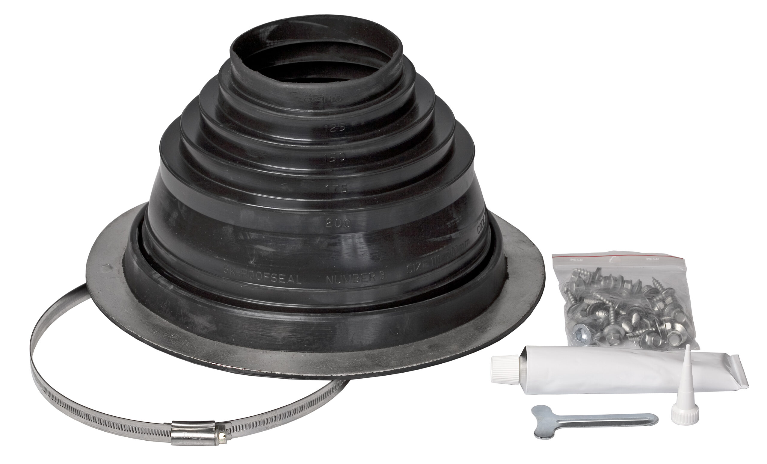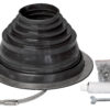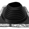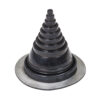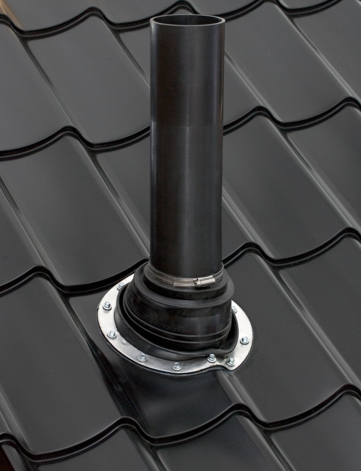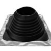 Description: Pass-through seal for different kinds of pipes (e.g. mountings for billboards and flagpoles or electrical wires) installed on a metal roof. The weather- and ozone-resistant properties of EPDM rubber are the best possible, and it can endure continuous heat stress of +90°C (and intermittently up to +150°C). EPDM rubber also tolerates the acids and alkalis often found in the air in industrial areas. Should be installed with hot bitumen between two felt layers. Pass-through seals are recommended to use on steel roofs.