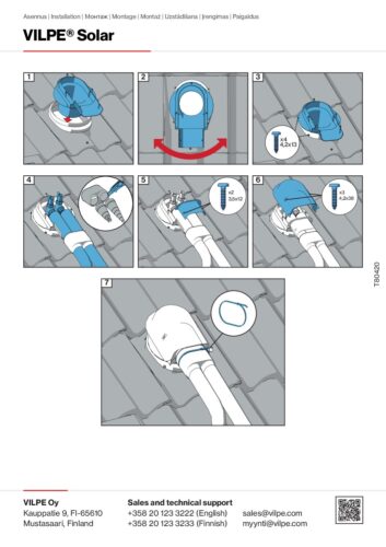 Description: For all round profiled metal sheet roofings (with roof tile pattern). Minimum length of tile pattern is 350 mm. Moldable and fully waterproof due to the rubber seal mounted on the lower surface. Used for passing pipes and cables from solar panels and solar collectors through the roof covering. Rubber sealing for VILPE Solar pass-throughs, made of tough and flexible technical rubber material. Fully waterproof, and used to lead Ø 4–50 mm wires and cables through a roof. Attaches to a Solar pass-through with a weatherproof fastener.