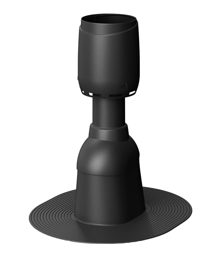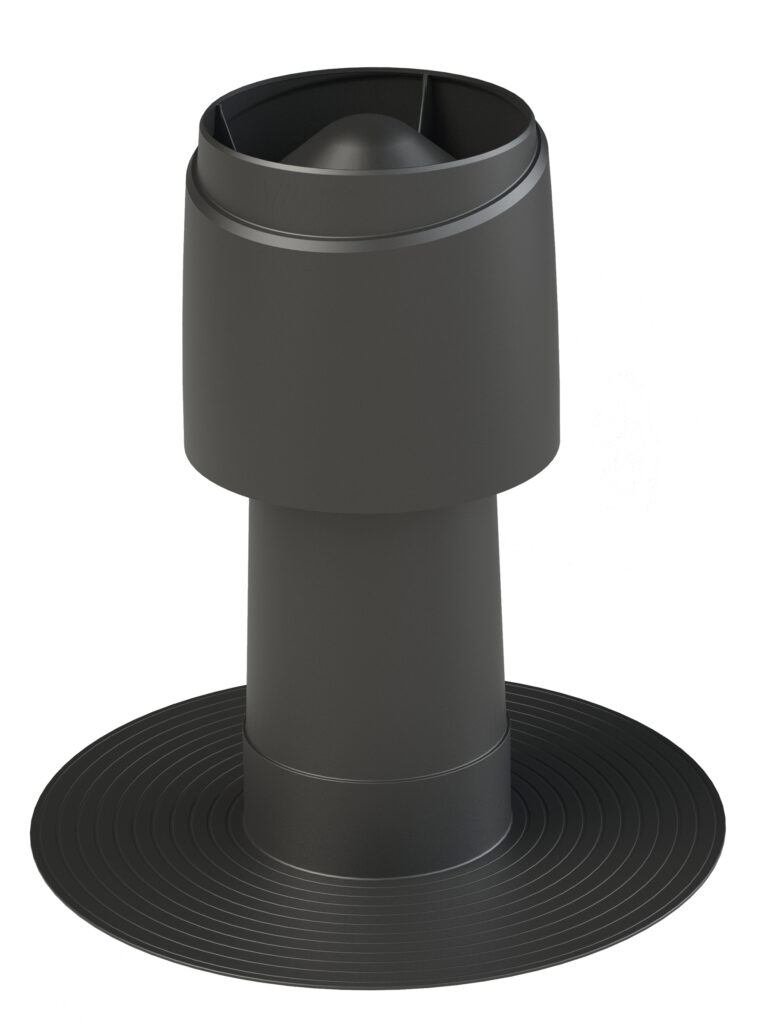 Description: Negative pressure ventilation pipe for the ventilation of low-pitched felt roof structures. Should be installed with hot bitumen between two felt layers.