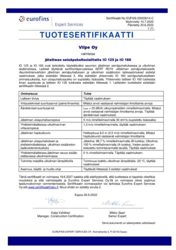 Kirjeldus: Välisseinale paigaldatav toode koos reduktoriga, mis võimaldab sama toodet kasutada erineva suurusega korterites. VILPE IO õhutiivikut saab seadistada nii vasak- kui parempoolsete sisse- ja väljatõmbeavade jaoks.