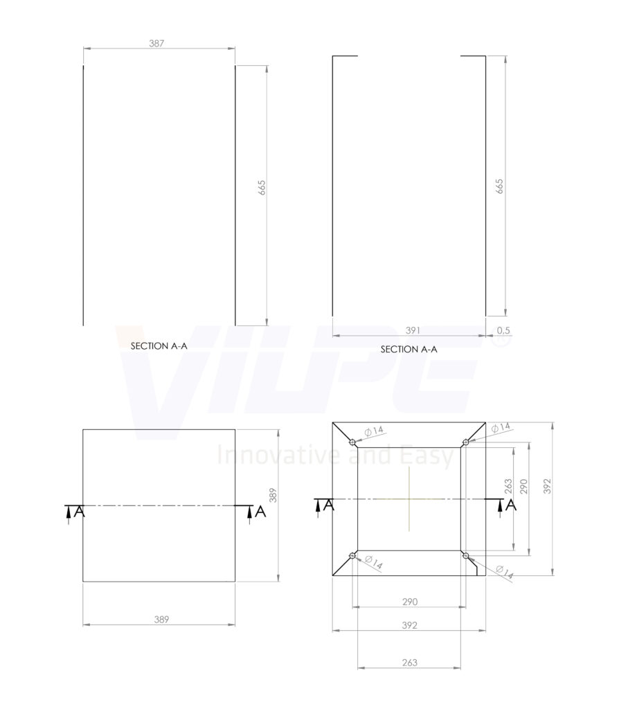 Kirjeldus: Kate moodulkorstnatele laiusega on 320–370 mm ja kõrgusega (katusest) 1106–1721 mm.