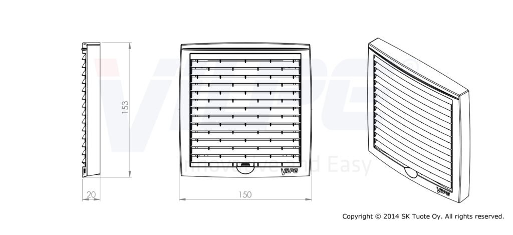 Kirjeldus: VILPE Multifunktsionaalne rest toimib erinevat tüüpi ruumide ventilatsioonirestina ja sobib ka mehaanilise ventilatsiooni sisselaske- või väljatõmbeavaks. Loomuliku ventilatsiooni korral on kohe kasutusvalmis. Mehaanilise ventilatsiooni korral on vaja lisada toruliitmik. Võimalik lisada ka putukavõrk. Kerge avada ja lukustada puhastamiseks. Aerodünaamiline disain tagab suure ristlõikeala ja madala rõhukao. Efektiivne pindala 84,5 cm². Ø 60 või 100 mm toruliitmik on vajalik mehaanilise ventilatsiooni korral.