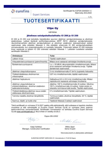 IO 200, IO 250 Eurofins EUFI29-22000241-C 09.09.2022 IO 200, IO 250 Eurofins EUFI29-22000241-C Lataa Jaa linkki Kopioitu! Lähetä linkki Sertifikaatit