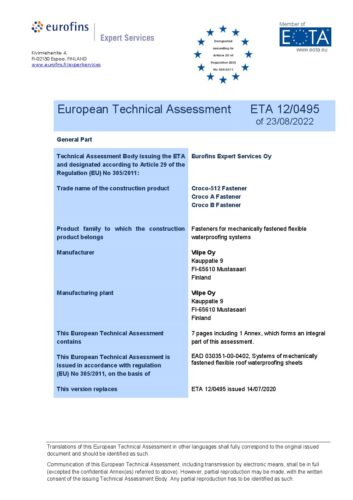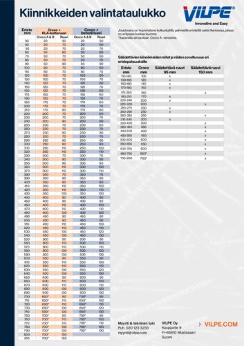 Croco-kiinnikkeet säädettävillä ruuveilla asennetaan VILPEn T-25 (7 mm) Torx-työkalulla. Betoniin asennettaessa on välttämätöntä tehdä esiporaus. Esiporaukseen käytetään 5 mm:n kiviporaa (esimerkiksi M-pora tai kierrepora). Niihin on saatavilla myös jatkovarret. Torx-työkalu ja porat jatkovarsineen myydään erikseen.
