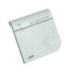 Tuotekuvaus: VILPE ECo Ideal Wireless -järjestelmään tarkoitettu CO₂-anturi ja seinäohjain (230 VAC). Mittaa sisäilman CO₂-tason ja lähettää tiedon langattomasti ohjausyksikölle, joka säätää ilmanvaihtotehoa mittausten perusteella. Painikkeella voidaan valita toimintatila tai tehostus, ja LED-merkkivalot näyttävät tason ja laitteen tilan.