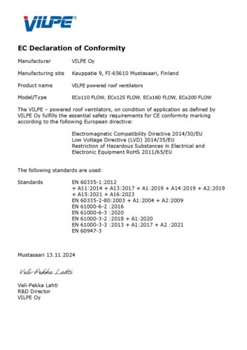 VILPE ECo FLOW 110 - ISO 5801:2017