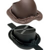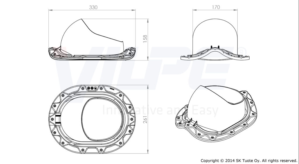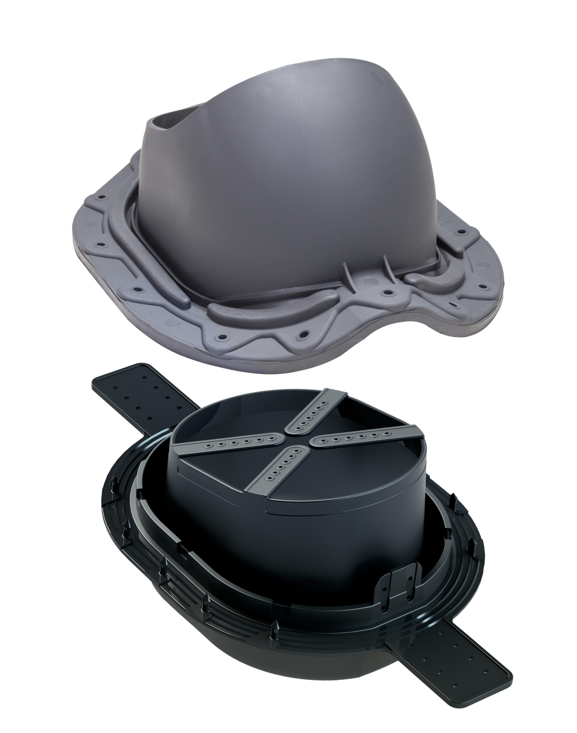 Käyttökohteet: Pyöreäharjaiset (tiilikuvioiset) muotopeltikatteet. Tiilikuvion pituus ≥ 350 mm. Läpivienti muotoiltava, alapuolelle istutettu kumitiiviste varmistaa vedenpitävyyden. Käytetään VILPEn P-sarjan ⌀ 110–125:mm tuuletus- ja poistoputkien sekä huippuimureiden kanssa. Poikkeuksena läpiviennin kanssa sopii käytettäväksi myös 160 mm:n eristämätön tuuletusputki sekä 160 mm:n P-sarjan Intake-tuloputki.