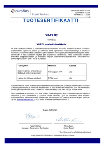 Universal-läpivienti sisältää aluskaterenkaan, tukikiinnikkeen pohjalevyn alareunaan, tiivistearkin ja ruuvit.