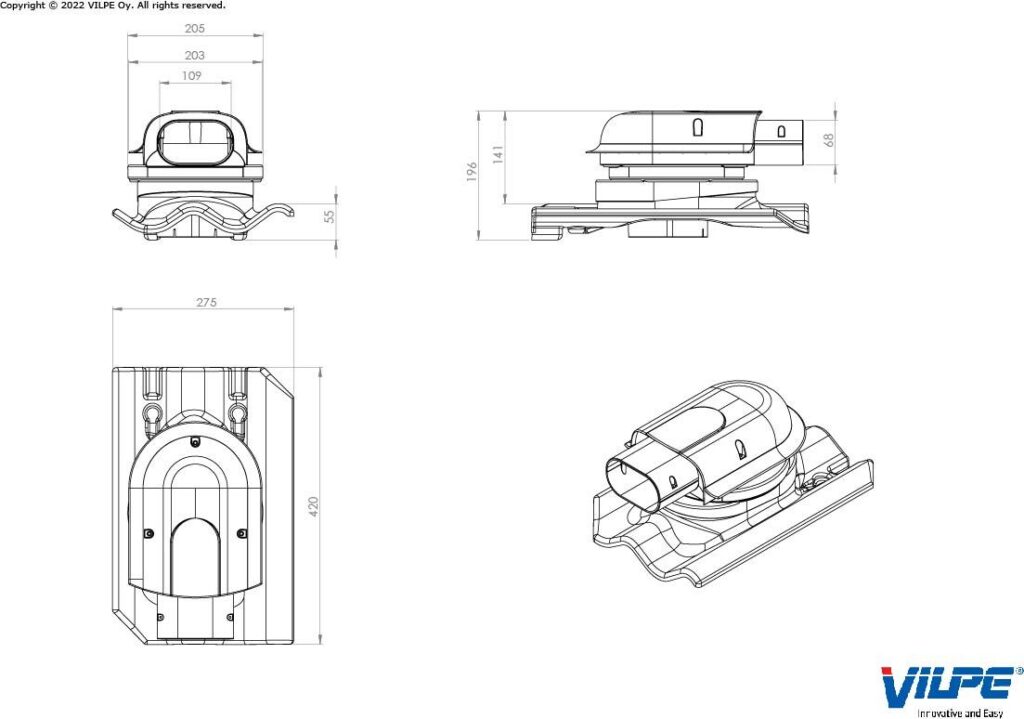 | Putki Ø110 | 18.4°-45° (1-w). 18.4°-55° (2-w) |