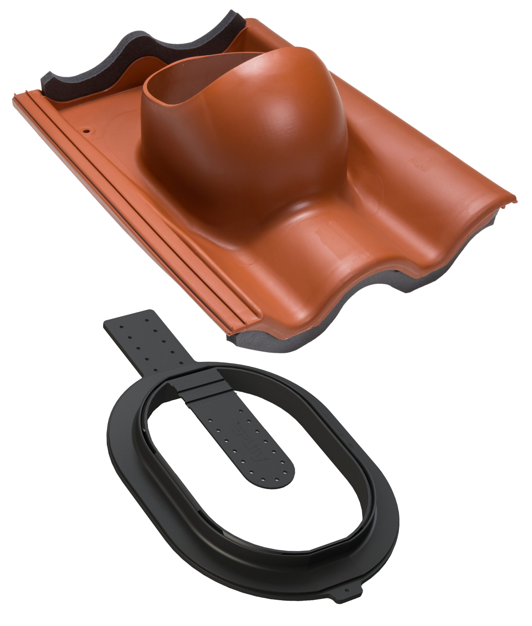 Käyttökohteet: Yleisimmät betonitiilikatteet. Korvaa yhden 2-aaltoisen kattotiilen, jonka leveys on 330 mm. Käytetään VILPEn P-sarjan ⌀ 110–125:mm tuuletus- ja poistoputkien sekä huippuimureiden kanssa. Poikkeuksena läpiviennin kanssa sopii käytettäväksi myös 160 mm:n eristämätön tuuletusputki sekä 160 mm:n P-sarjan Intake-tuloputki.