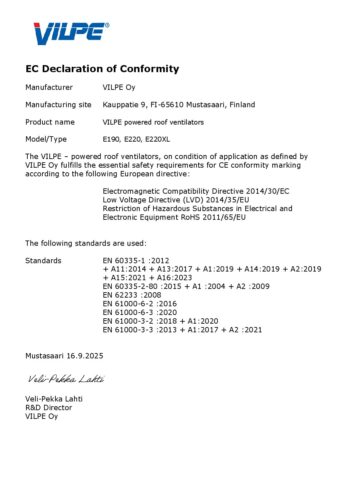 DECLARATION OF CONFORMITY E190, E220, E220XL Atsisiųsti Bendrinti nuorodą Nukopijuota! Siųsti nuorodą Sertifikatai