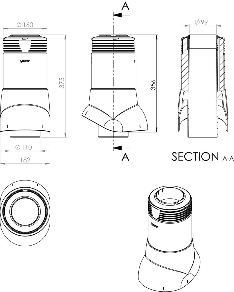 Paskirtis: izoliuotas plastikinis vamzdis kanalizacijos vėdinimui. Papildomai pagal stogo dangą reikia pritaikyti praėjimo elementą. Naudojant kaip radono ventiliacijos vamzdį, papildomai reikalingas VILPE gaubtas-160.