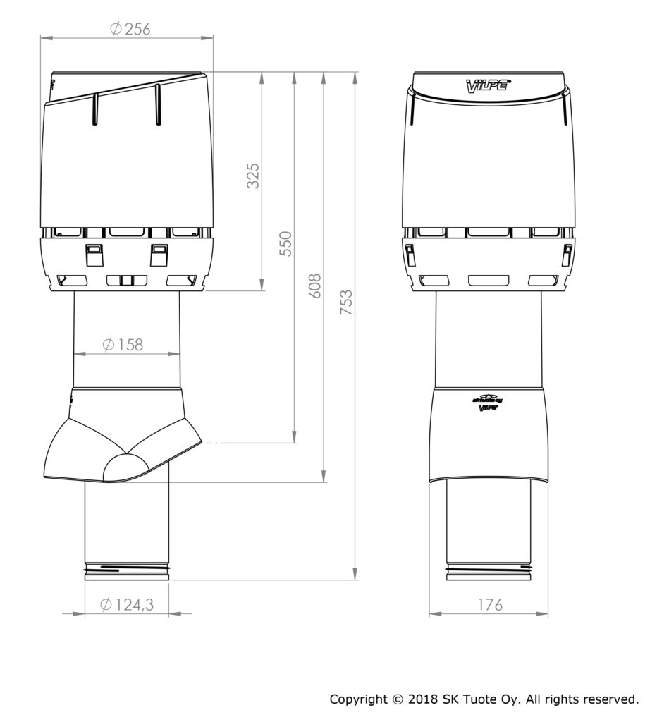 Paskirtis: izoliuotas ventiliacijos vamzdis su FLOW gaubtu. Cinkuoto plieno vidinis vamzdis su lipniu sandarikliu. Papildomai pagal stogo dangos tipą reikia pritaikyti VILPE praėjimo elementą. Naudojamas šalinti orą iš patalpų arba iš tradicinių virtuvės gartraukių su varikliu. FLOW serijos gaminių slėgio nuostoliai 40% mažesni nei tradicinių VILPE produktų. Pavyzdys: 125P/IS/500 FLOW − 396 m3/h, 55Pa, o 125P/IS/500 − 396 m3/h, 92Pa