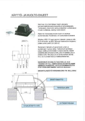Komplektacija: ventiliatorius, elektros kabelis (1m), jungiamoji dėžutė, izoliacinis pagrindas, kampuočiai (4 vnt.), tvirtinimo elementų rinkinys: varžtai su veržlėmis (8 vnt.), instrukcija.