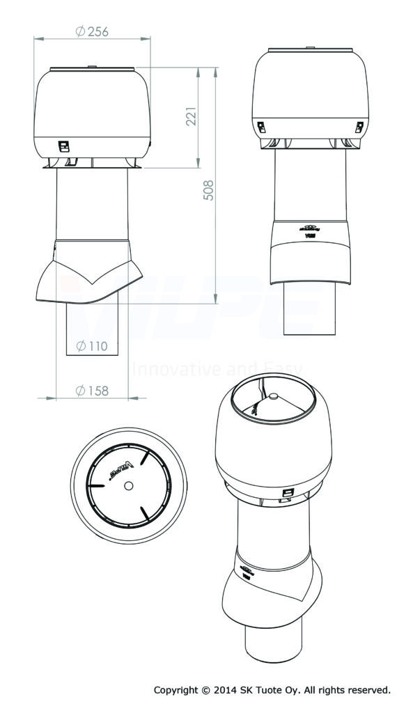 KOMINEK WENTYLACYJNY IZOLOWANY, SANITARNY 110P/IS/350