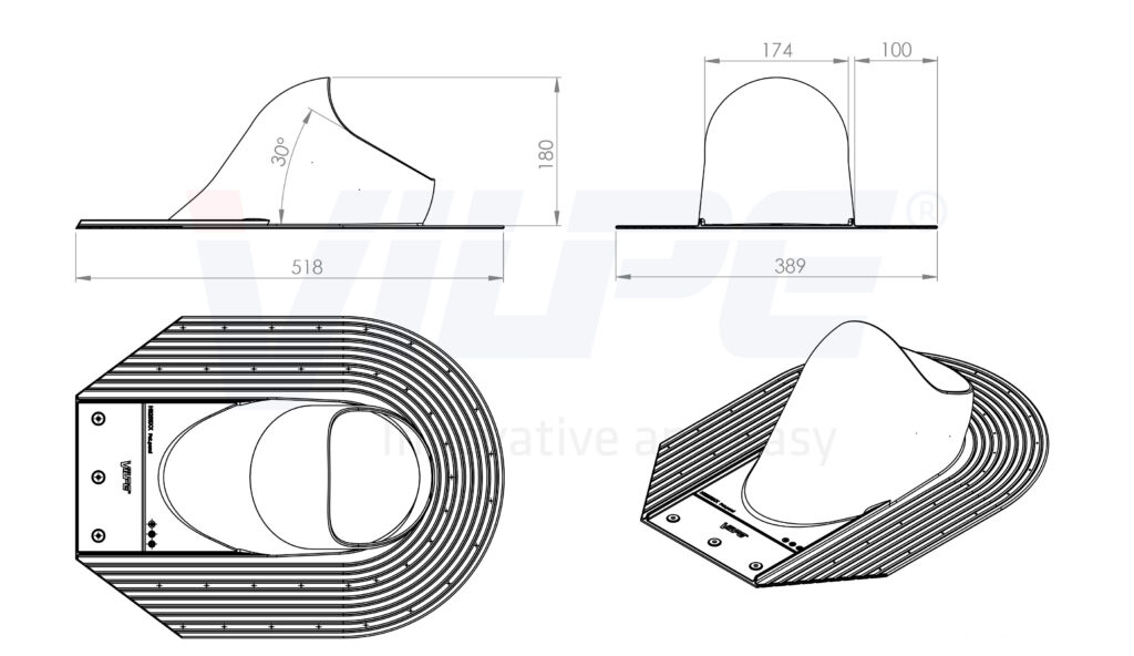 Zastosowanie: Przejście dachowe HS VILPE umożliwia zamontowanie wentylatorów dachowych, kominków wentylacyjnych i pozostałych produktów VILPE na dachach pokrytych gontem i łupkiem.
