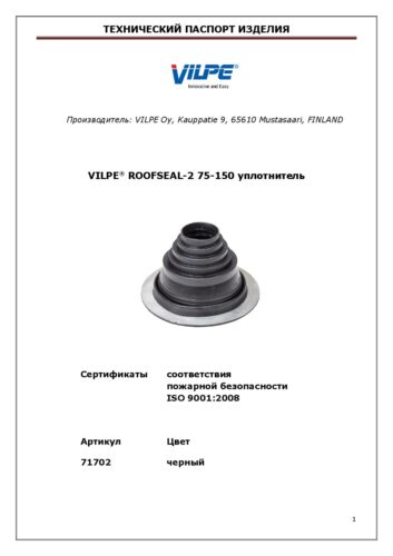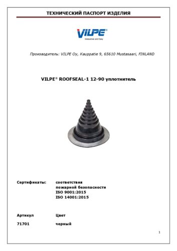 VILPE ROOFSEAL-1, Технический паспорт Скачать Поделиться ссылкой Скопировано! Отправить ссылку Технические паспорта