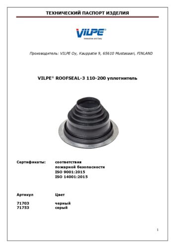 VILPE ROOFSEAL-4(7),5(8),6(9) комплект, Технический паспорт Скачать Поделиться ссылкой Скопировано! Отправить ссылку Технические паспорта