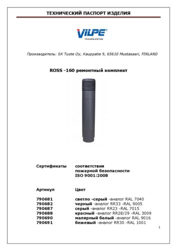 ROSS-160 ремонтный комплект Скачать Поделиться ссылкой Скопировано! Отправить ссылку Технические паспорта