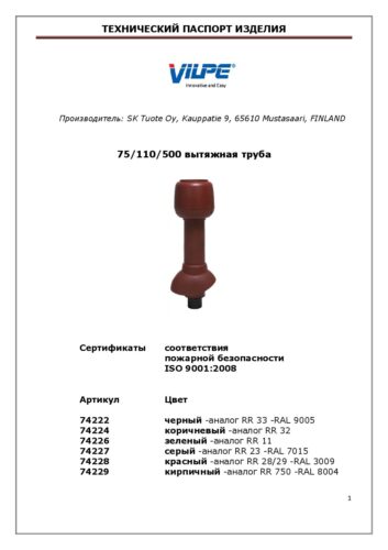 75/110/500 вытяжная труба Скачать Поделиться ссылкой Скопировано! Отправить ссылку Технические паспорта