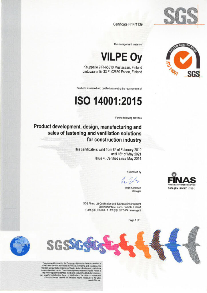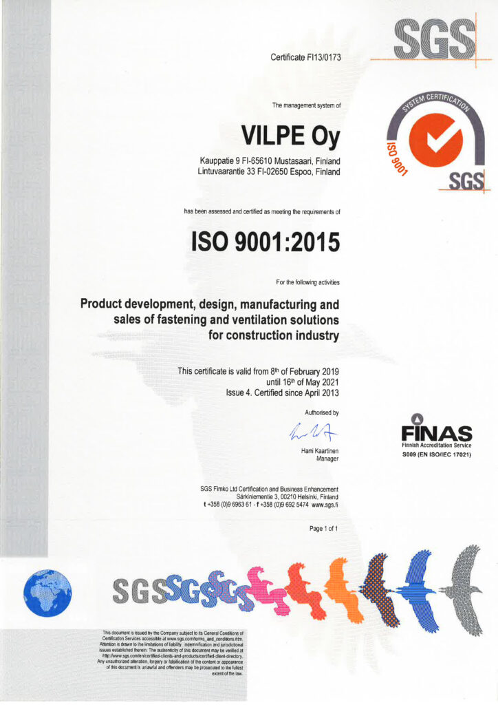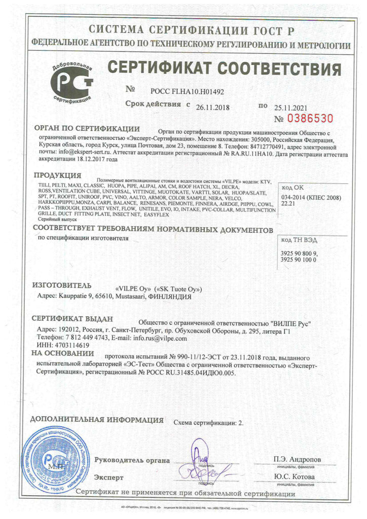 Полимерные вентиляционные стояки и водостоки системы “VILPE®” Download Share link Copied! Send link Certificate