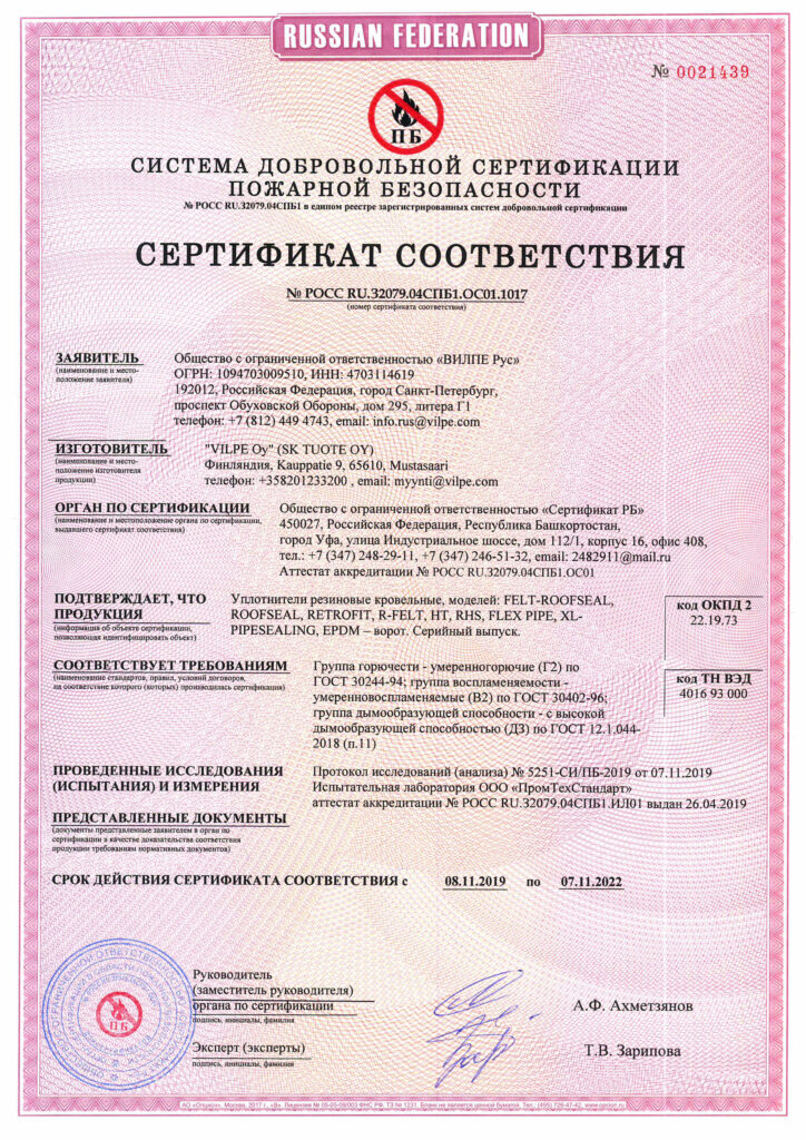 Сертификат пожарной безопасности на уплотнители из резины Download Share link Copied! Send link Certificate