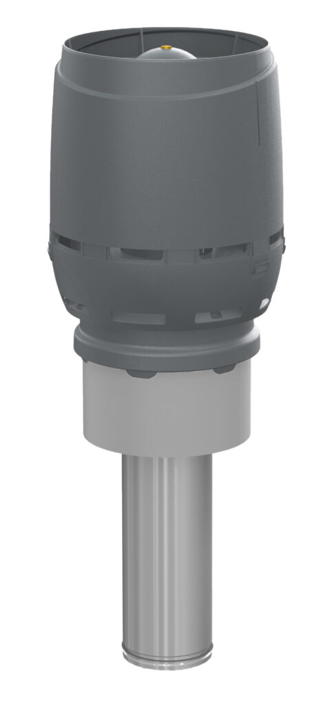 125C/ИЗ/400 FLOW ВЕНТИЛЯЦИОННЫЙ ВЫХОД Вентиляционный выход изолированный с колпаком серии FLOW. Внутренняя труба из оцинкованной стали с манжетным уплотнением. Устанавливается в изготовленный жестянщиком конус с посадочным диаметром Ø 170 мм. Комплект: труба с FLOW-колпаком и набор крепежа.