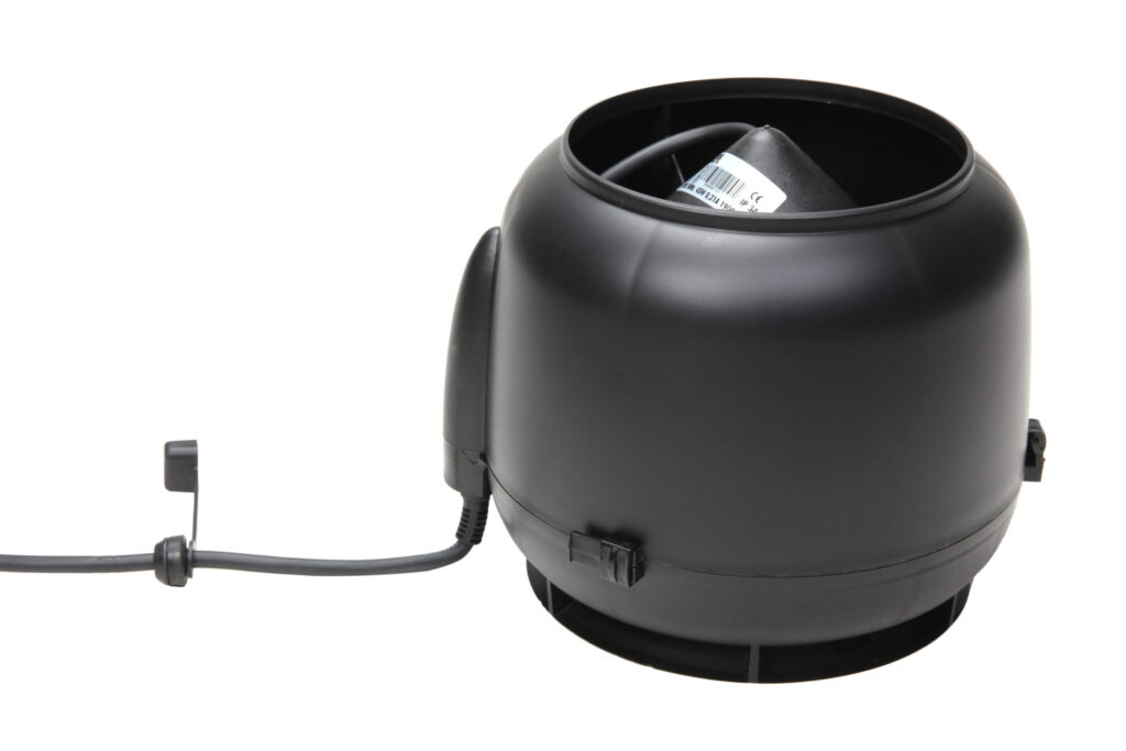 Тип двигателя DC. Энергоэффективный вентилятор постоянного тока для вентиляции гаража, биотуалета и удаления почвенного газа радона с колпаком Flow. Скорость вращения плавно регулируется регулятором 0-10 V, который приобретается отдельно. Совместим с изолированной трубой VILPE 110 мм или с другой трубой с наружным диаметром 160 мм. Основание для монтажа на плоскую поверхность входит в комплект, при установке на вентиляционную шахту, периметр шахты должен быть не меньше размера основания.