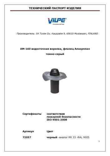АМ водосточная воронка, фланец Алкорплан темно-серый