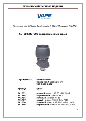 160P/IS/500 XL ВЕНТИЛЯЦИОННЫЙ ВЫХОД