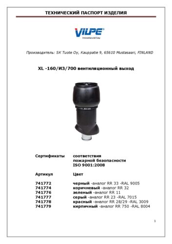 160P/IS/700 XL ВЕНТИЛЯЦИОННЫЙ ВЫХОД