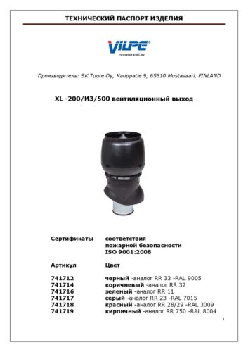 200P/IS/500 XL ВЕНТИЛЯЦИОННЫЙ ВЫХОД