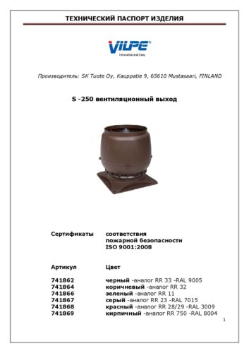 S -250 вентиляционный выход представляет собой дефлектор с вертикальным воздушным потоком для вентиляции частных домов, поквартирной или поэтажной вентиляции многоквартирных домов и учреждений.