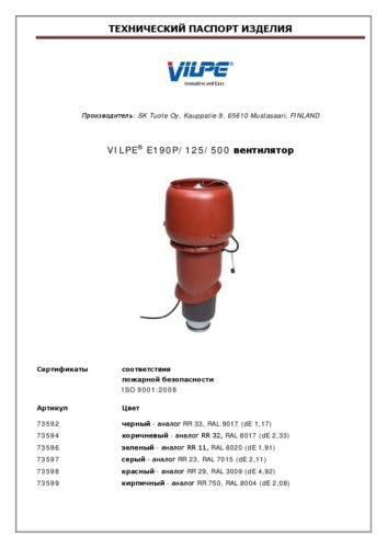 Комплект: E190Р/125/500 вентилятор, монтажная инструкция и набор крепежа.