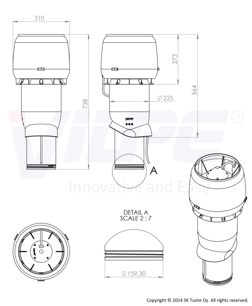 Диаметр воздуховода 160 мм. Внешний диаметр 225 мм. Высота 500 мм.