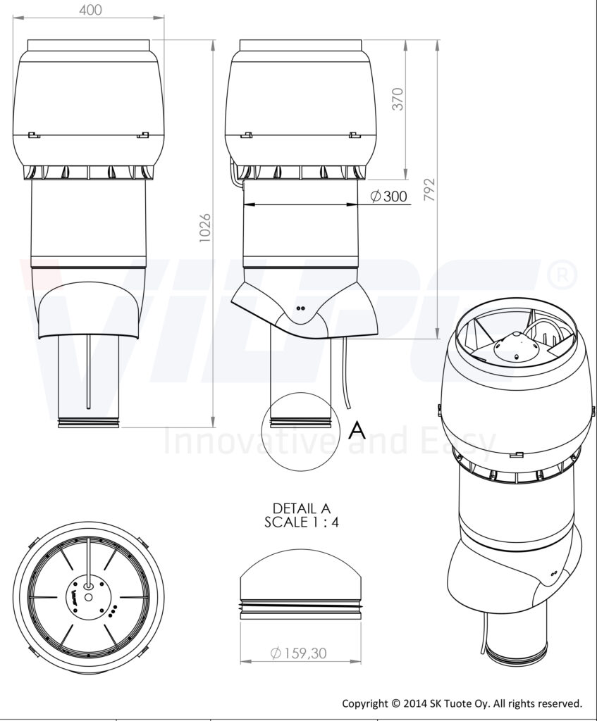 Диаметр воздуховода 160 мм. Внешний диаметр 300 мм. Высота 700 мм.
