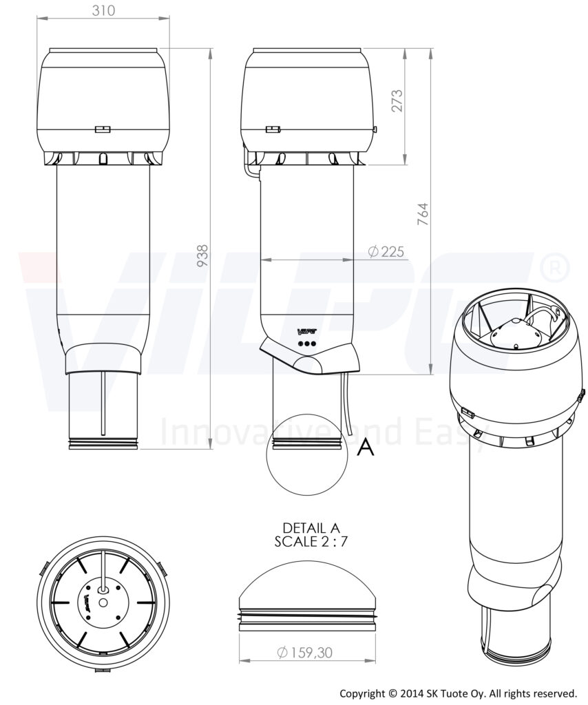 Диаметр воздуховода 160 мм. Внешний диаметр 225 мм. Высота 700 мм.