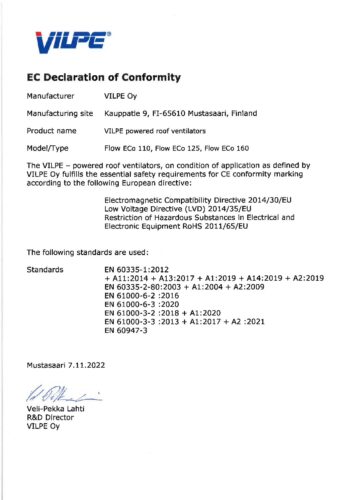 VILPE ECo FLOW 160 - ISO 5801:2017