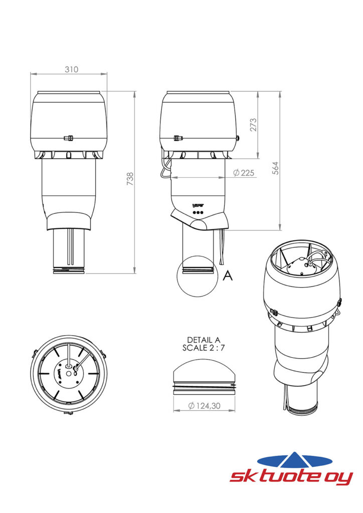 Диаметр воздуховода 125 мм. Внешний диаметр 225 мм. Высота 500 мм.