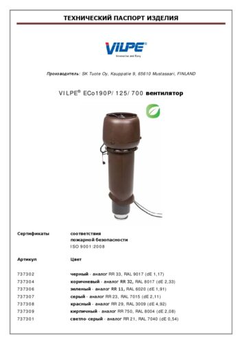 Комплект: ECo190Р/125/700 вентилятор, монтажная инструкция и набор крепежа.
