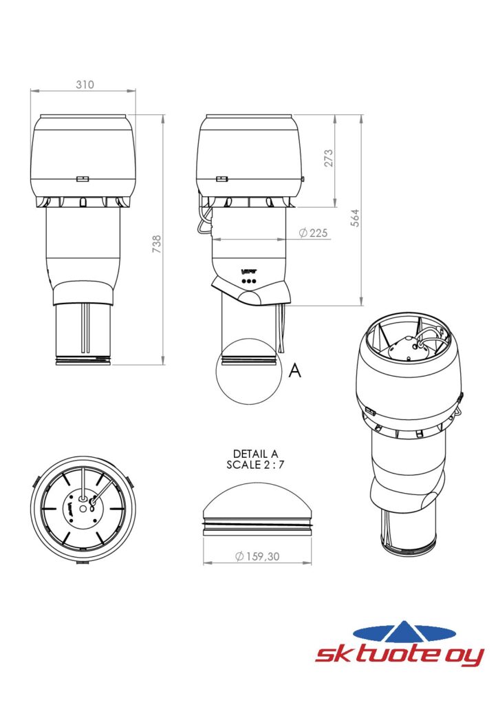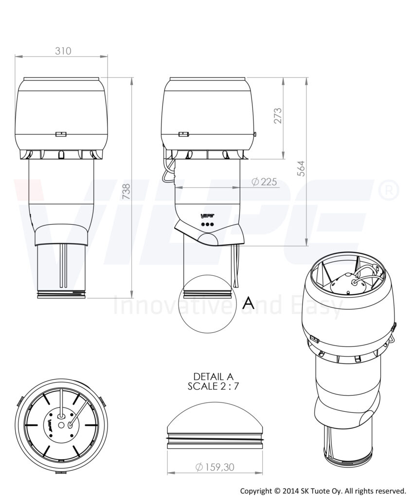 Диаметр воздуховода 160 мм. Внешний диаметр 225 мм. Высота 500 мм.